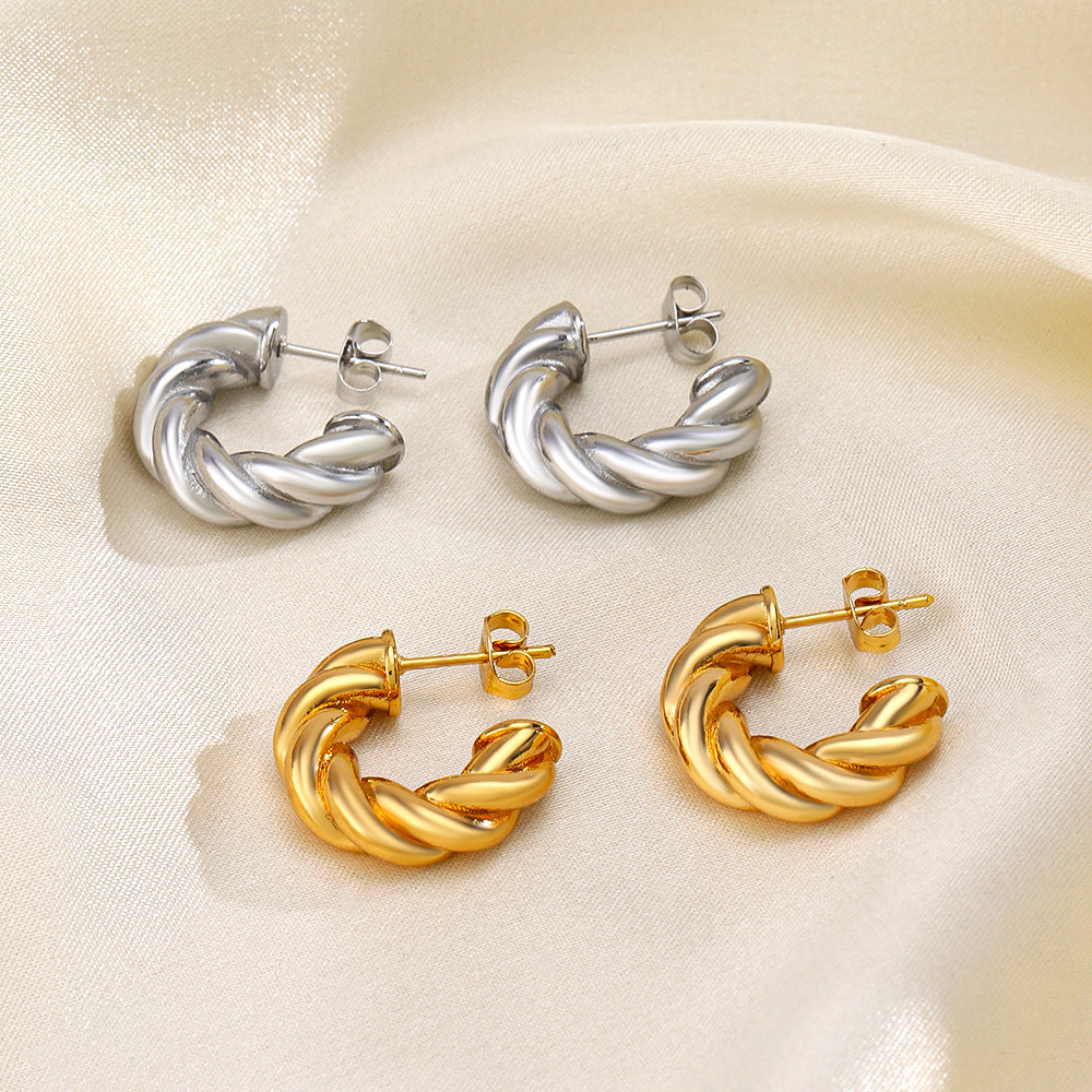 Crafted from premium 18K gold-plated stainless steel, TWIST GOLD earrings showcase dimensional sculptural beauty with luxurious warmth. The unique rotated silhouette catches light from every angle, creating dynamic visual interest that's both current and timeless.