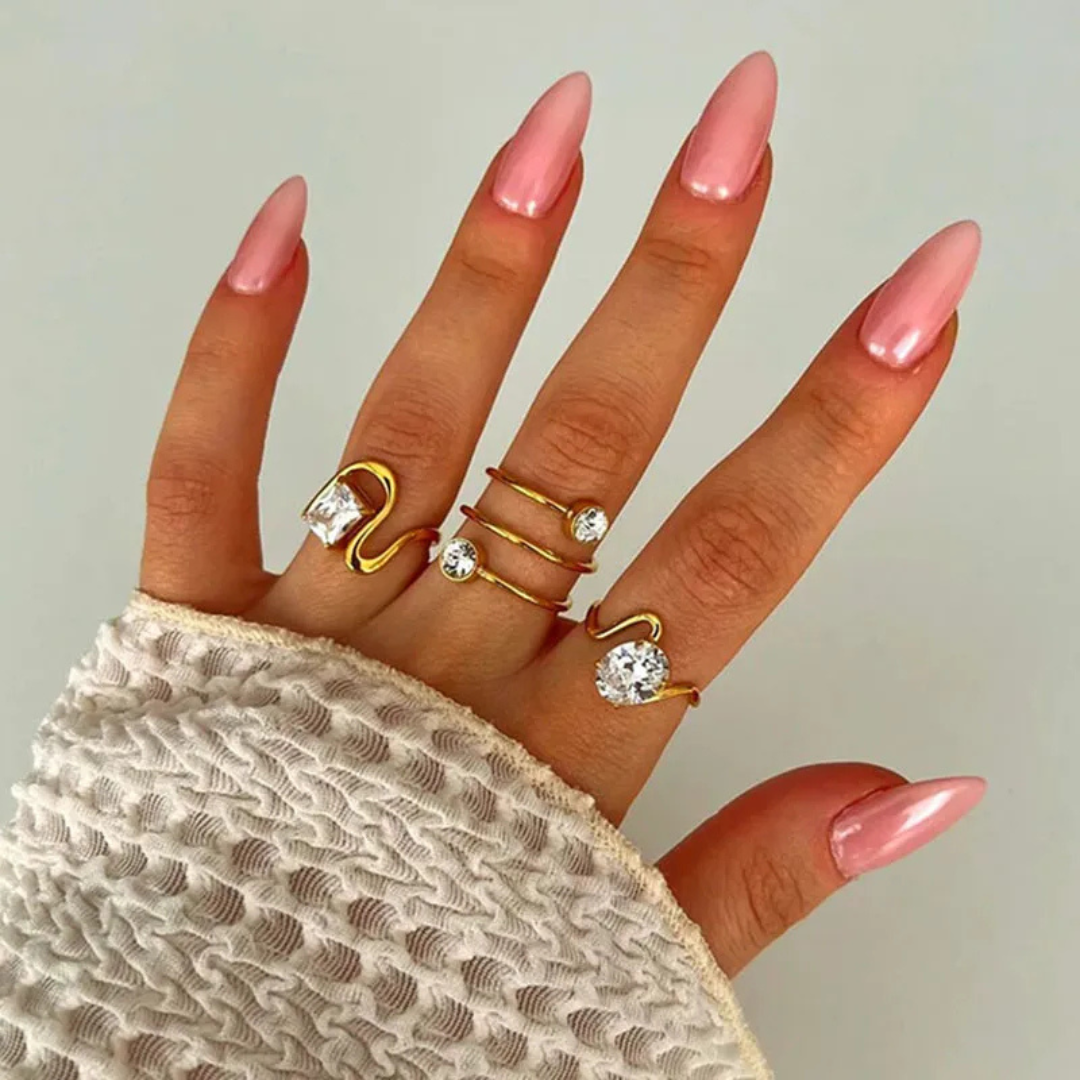Crafted from premium 18K gold-plated stainless steel with brilliant stone embellishments, SPIRA delivers bold presence with dynamic design. The distinctive spiral motif creates mesmerizing visual movement while sparkling accents add glamorous dimension, making this ring an instant conversation starter.